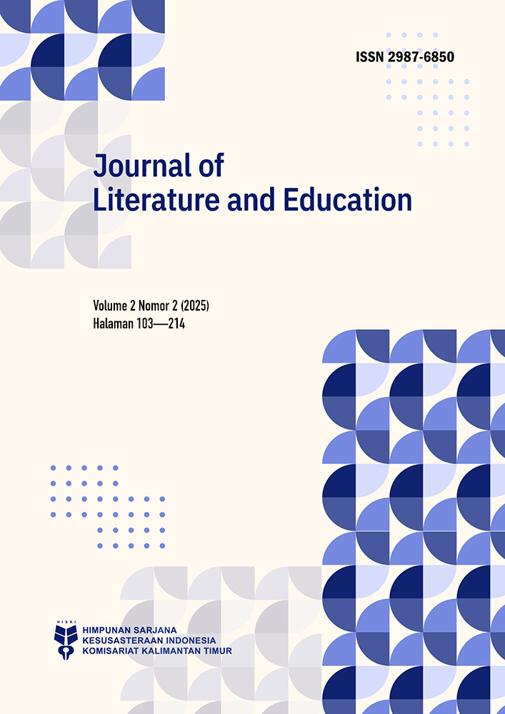 Journal of Literature and Education (e-ISSN 2987-6850) is a peer-reviewed and open-access scientific journal that covering the latest literary research, language research, and language and literature learning research. The journal was first published in 2023 by Himpunan Sarjana Kesusastraan Indonesia (HISKI) Komisariat Kalimantan Timur; and published biannually, in June and December. The journal provides a platform for researchers, academics, professionals, and practitioners to provide and share knowledge through high-quality theoretical, empirical, and experimental research that aims to contribute to and develop literary theory, language/linguistic theory, and language and literature learning. The focus and scope of this journal includes studies in the fields of literature, language, and language and literature learning. Research data can come from the local languages in Indonesia, Indonesian, English, Arabic, French, and other foreign languages.